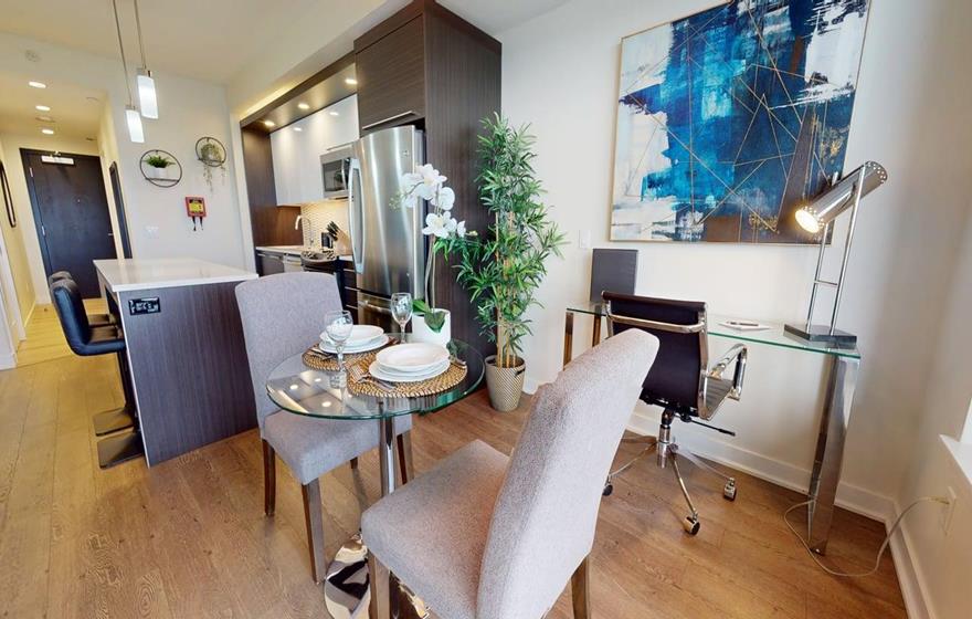 Soigneusement aménagés, ces appartements entièrement meublés de type studio, une chambre et deux chambres se distinguent par leurs accents de bois naturel, leurs finitions en pierre raffinées et leurs appareils électroménagers en acier inoxydable. Les aires ouvertes créent une ambiance lumineuse et aérée, accentuée par de grandes fenêtres, des habillages de fenêtres sur mesure et des balcons privés avec vues sur la ville ou l’eau. Chaque suite comprend une cuisine moderne entièrement équipée, idéale pour le logement temporaire et les séjours prolongés à Halifax.