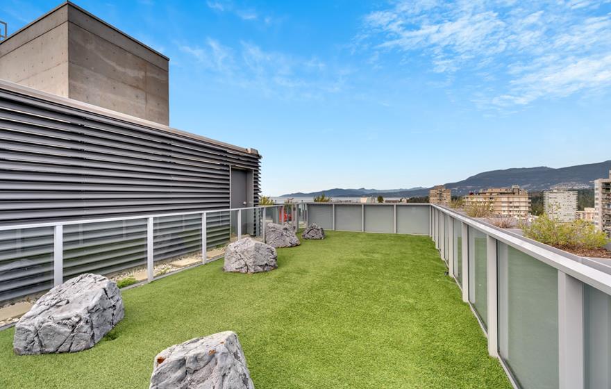 These high-end executive suites feature Japanese-inspired interiors with outstanding galley kitchens, custom wood veneer cabinetry, quartz counter tops, and fully tiled bathrooms with matte black Kohler fixtures. With light oak flooring throughout, large windows and large balconies, the sunlight filters in creating a bright and warm living space. 1, 2 and 3 bedrooms available! The building amenities feature a separate activity building with a fitness centre and yoga studio on the main floor, and a rooftop terrace with barbeque and dining area overlooking the breathtaking English Bay. You will want to end each day on the rooftop to take in the fresh air and watch the sun set over the shoaling waters.