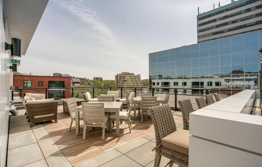 Guests can enjoy breathtaking sunsets from the shared rooftop terrace, complete with BBQs, a fire pit, and views of the harbour and Halifax skyline. Additional amenities include a fitness room with a dry sauna, heated underground parking, and an indoor car wash bay.