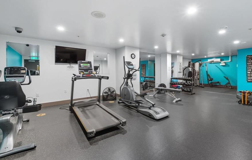 Guests enjoy access to a fitness facility and an entertainment lounge perfect for both relaxation and productivity.